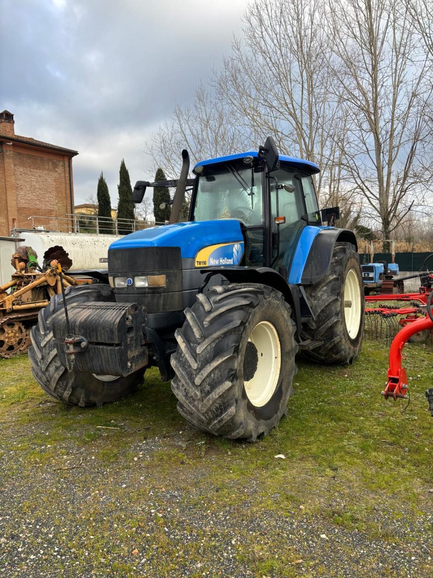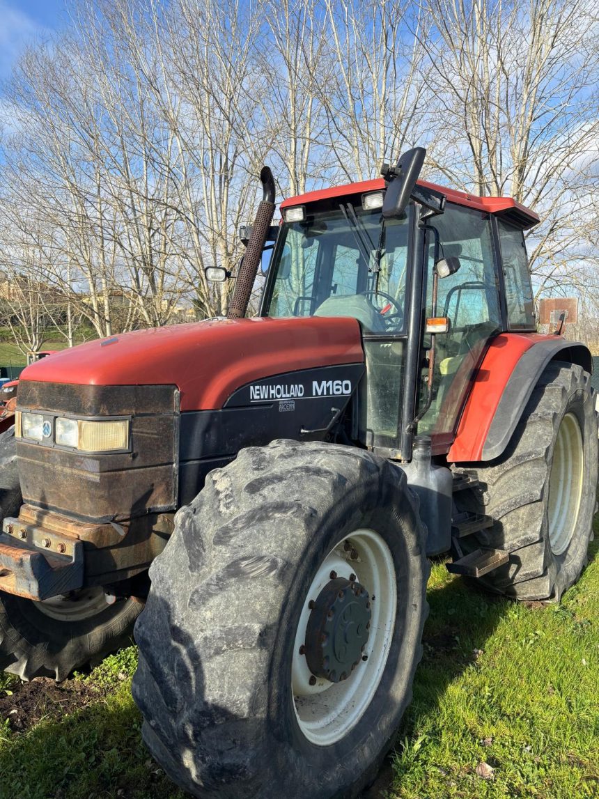 TRATTORE NEW HOLLAND M160, Cambio power shift range command, cabina aria condizionata, sollevatore elettronico, presa di forza 540/540e/1000 a innesto elettroidraulico, tirante e terzo punto idraulici, frenatura rimorchi idraulica e pneumatica, gancio di traino d3 e barra oscillante, nr. 4 distributori doppio effetto, pneumatici 650/65R38 e 540/65R28 con parafanghi, anno 2000